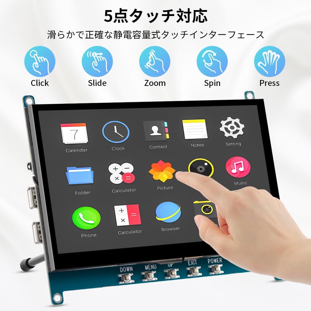 7インチ 小型モニター タッチ モバイルモニターIPS 1024×600 高輝度 5V給電 OTG搭載 小型ディスプレイミニ ディスプレイ PC ラップトップ Rasp Pi用
