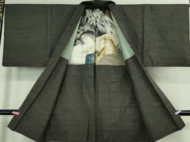 平和屋着物 上 男性 本場大島紬 アンサンブル 長羽織 羽裏 虎 kh 5