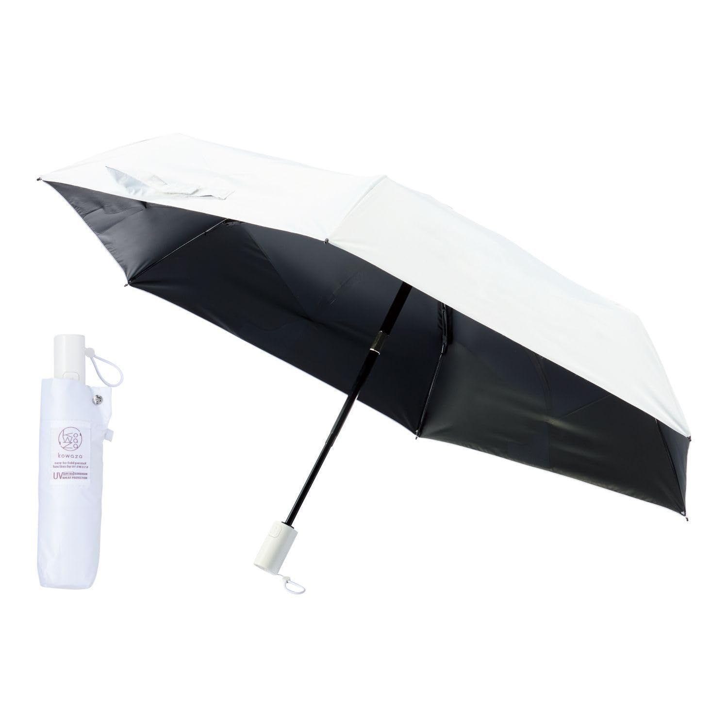 Color ホワイト kowaza 自動開閉 折りたたみ傘 遮光 遮熱 UVカット 日傘 晴雨兼用 コワザ 無地 畳みやすい urawaza メンズ レディース ユニセックス 親骨50 cm 30287 今田美桜 アンバサダー