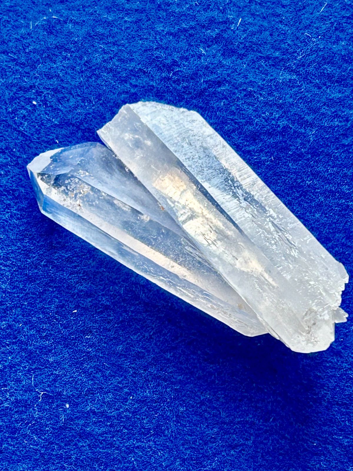 こちらの個体は、二つのポイントが交差する「X型」の珍しい形状をしており、エネルギーが中心で融合・循環しているような印象を与えます。