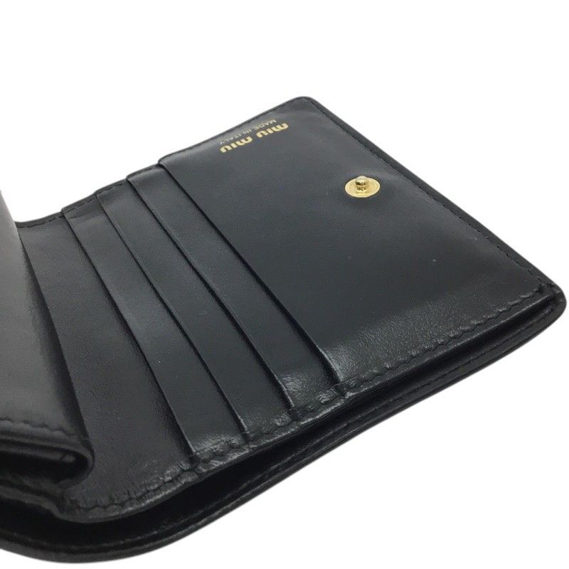 miumiu ミュウミュウ 二つ折り財布 コンパクトウォレット レザー ブラック ゴールド金具 レディース 品 -B 質屋 か n