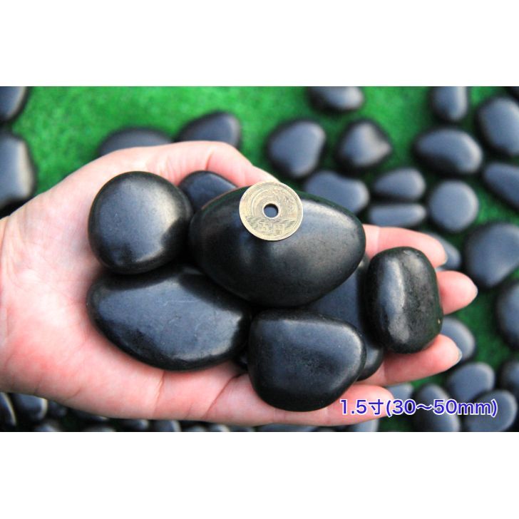 正宇ストーン 彩美 黒真珠 最 黒玉砂利 磨き光沢 砂利 庭 黒玉石 砂利石 黒玉 那智黒石風 玉石 5種類 2分 6~9mm 3分 10~15mm 5分 15~20 mm 8分 22~30mm 1.5寸 30~50mm 60 kg