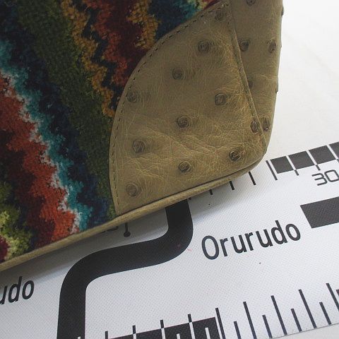 ハンド ショルダー 2 WAYバッグ ストライプ ベージュ オーストリッチ タオル地