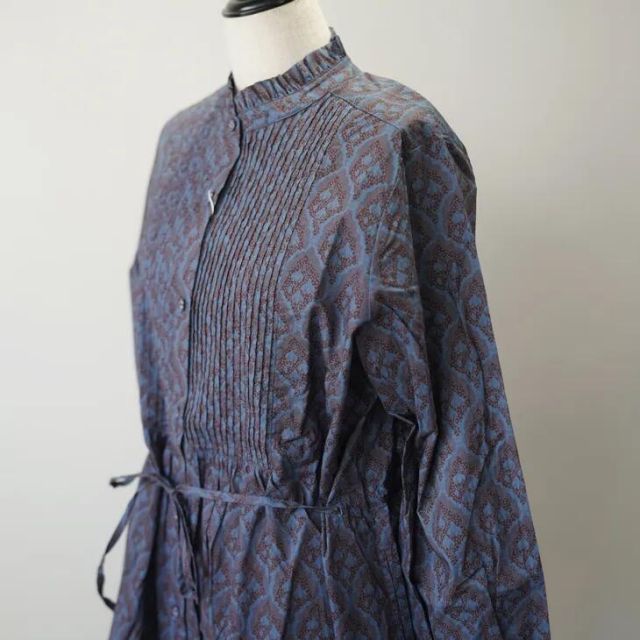 sosotto ソソット 花柄プリントピンタックウエストドロストOP brown x blue toutouyouette ワンピース ドレス オリジナル生地