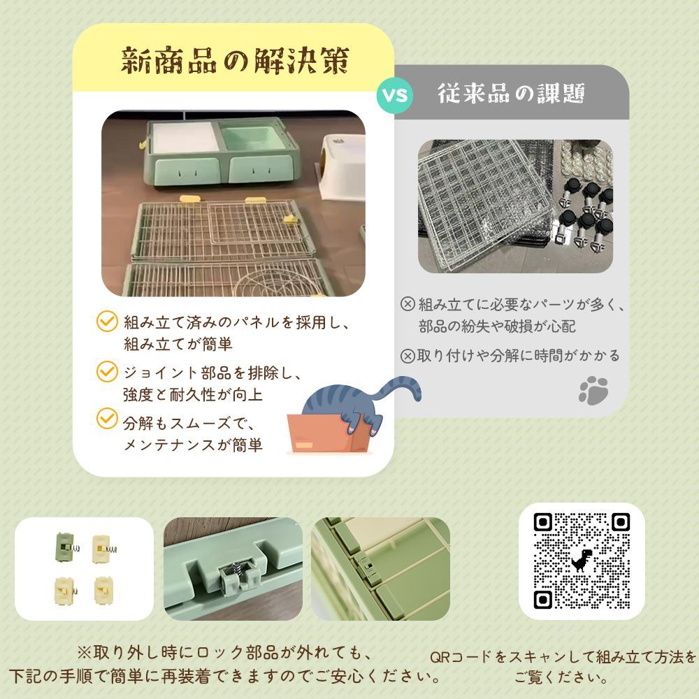 猫砂の飛び散り防止猫トイレ付き 猫 ケージ キャットケージ 2段 幅広設計 自由 猫ドア付き 猫ゲージ おしゃれ キャットハウス