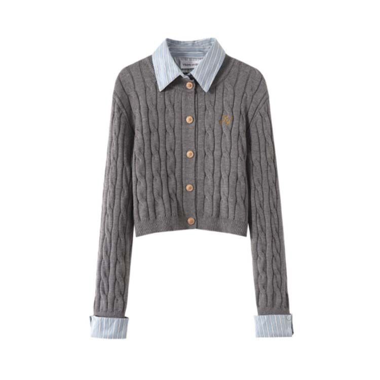 上下セット セットアップ 学院風 セーターセット チェック柄 スカートセット ニットトップス jk風 通学 学生 プルオーバー 長袖 ケーブル編み ロングスカート 重ね着風 折り襟 Aライン yz 6775