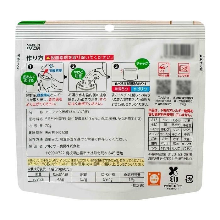 原材料:名称:アルファ化米飯(わかめご飯)