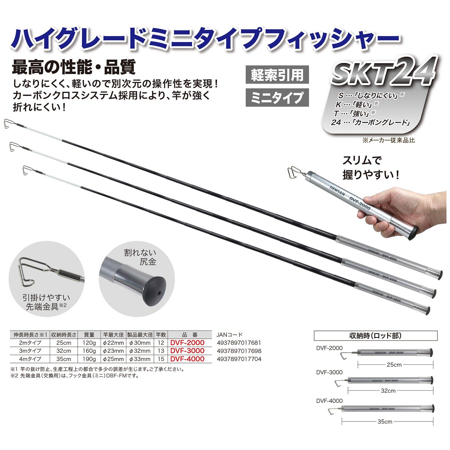 カーボンクロスシステム採用により、しなりにくい軽い操作性 4mタイプ