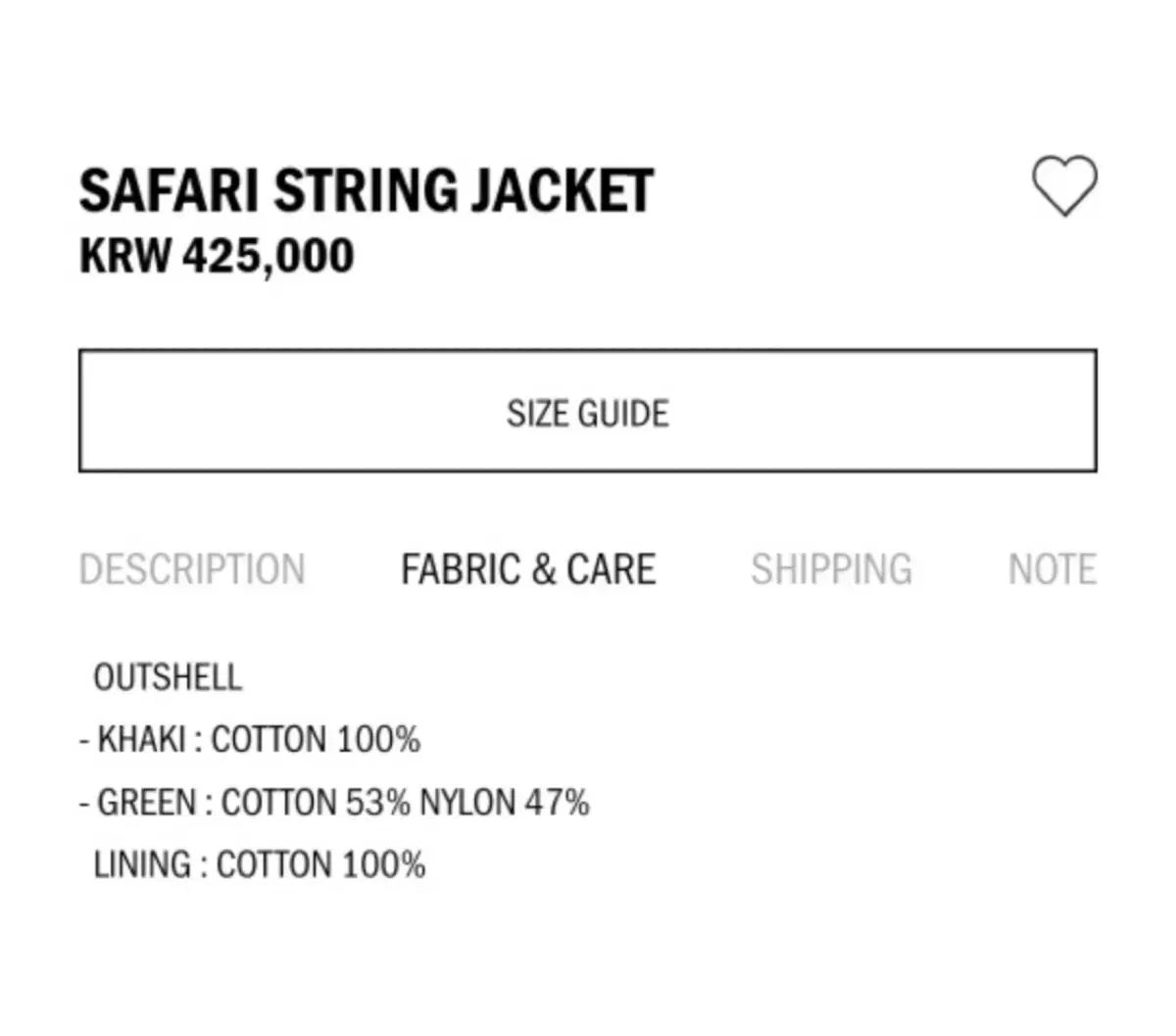 カーキ カラー の エートス シャーリング サファリ ジャケット です。 サファリ ジャケット 特有 の ポケット ディテール が 生きています。 ウエスト シャーリング で フィット 調節 可能 です。