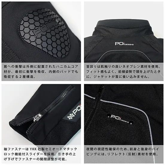 POiデザイン スポルトプロテクティブ メッシュジャケット PMJ-02 プラチナホワイト Mサイズ フルプロテクション インナージャケット装備