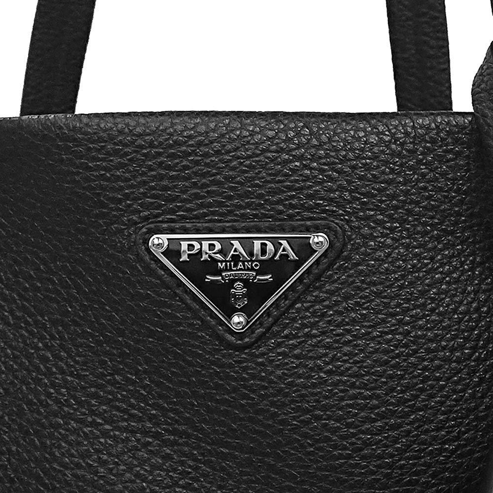 プラダ 三角ロゴプレート トートバッグ VITELLO DAINO レザー ブラック シルバー金具 2 VG 130 PRADA