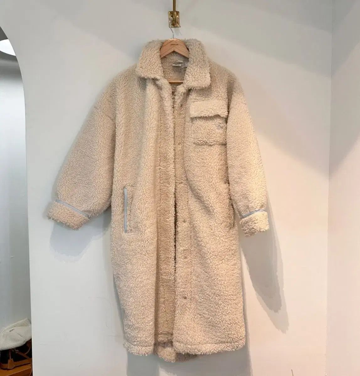 柔らかい adidas シェルパ ロング フリース です。ボア シープスキン 素材で可愛い 感じを 줍니다。ヒップ を 覆う Long 丈 なので暖かく 着る ことができます。 별도 コメント 無ければ 馬狼 照英 安全決済 お願いします!