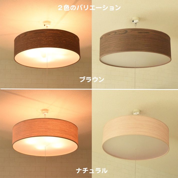 豪華にも天然木シェード。ウォールナット製のブラウンと、ホワイトオーク材のナチュラル。オリジナルのホワイト・ブラック同様、4灯のビッグなシーリングライトです。