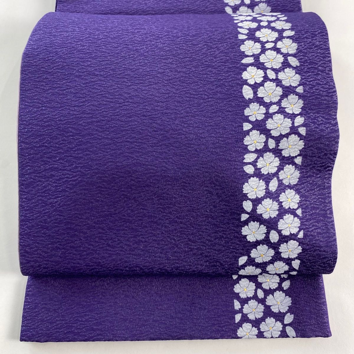 袋帯 菅有鬼一 落款 花 花びら 銀通し 紫 六通 正絹