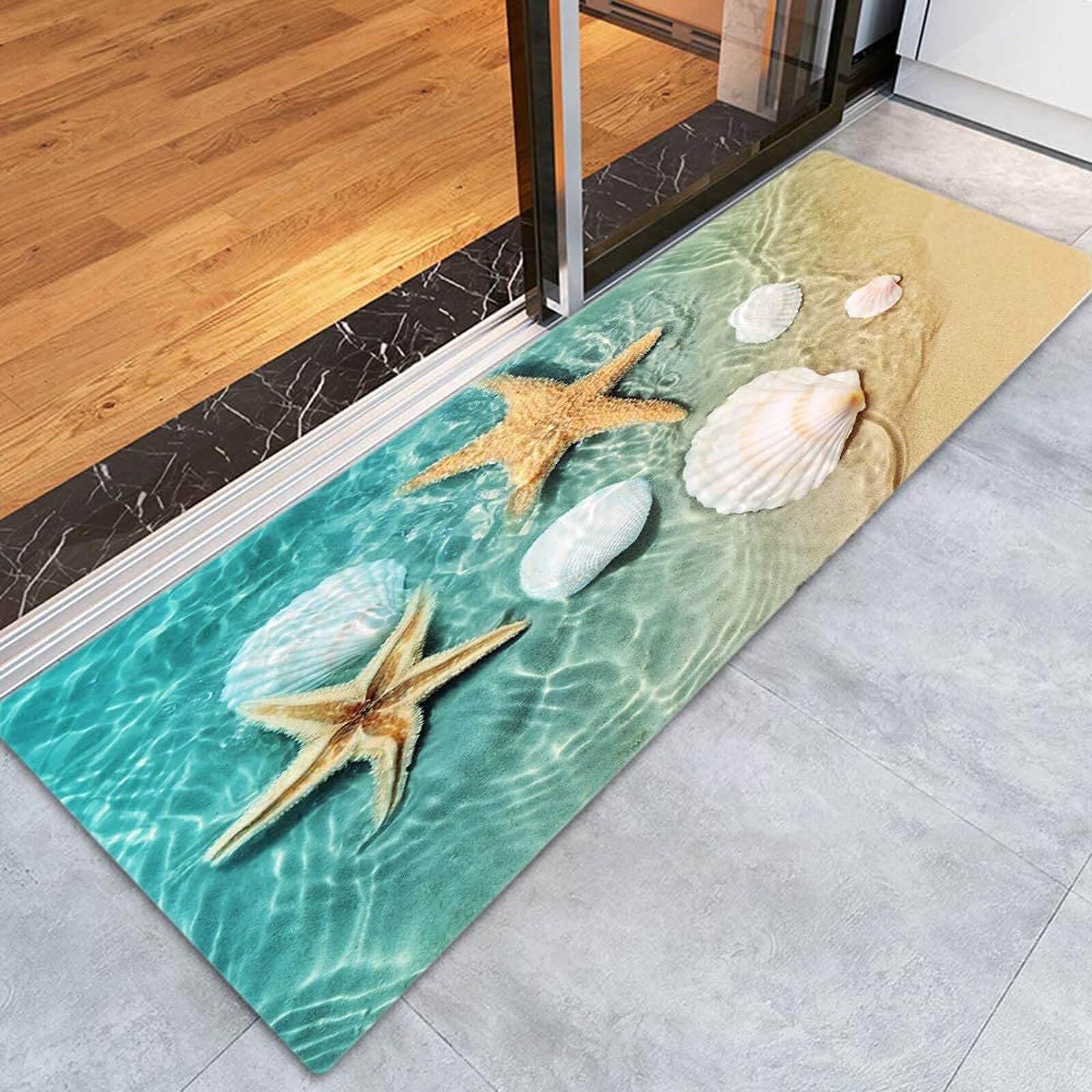バスマット カーペット マイクロファイバー 60×180cm 厚さ2cm キッチンマット 廊下用 寝室用 ベッドサイド ふわふわ 滑り止め付き, 洗濯可能, 吸水速乾 ヒトデ