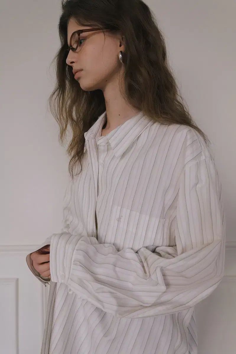 overdue flair オーバーデューフ コットン オーバーサイズ シャツ アイボリー ストライプ