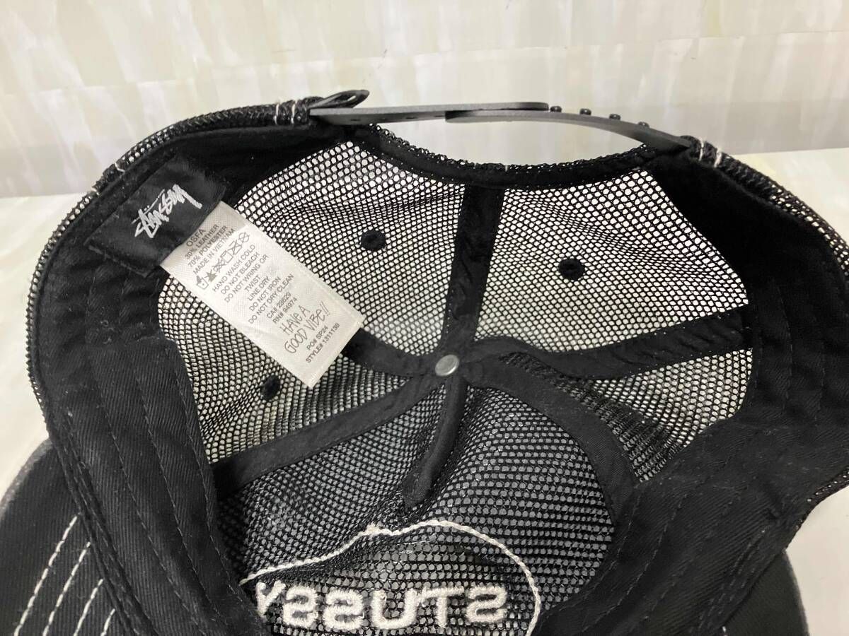STUSSY 24 SS LOW PRO TRUCKER CUT-OUT LEATHER SN 1311138 ステューシー トラッカーキャップ メッシュ ブラック 57 cm