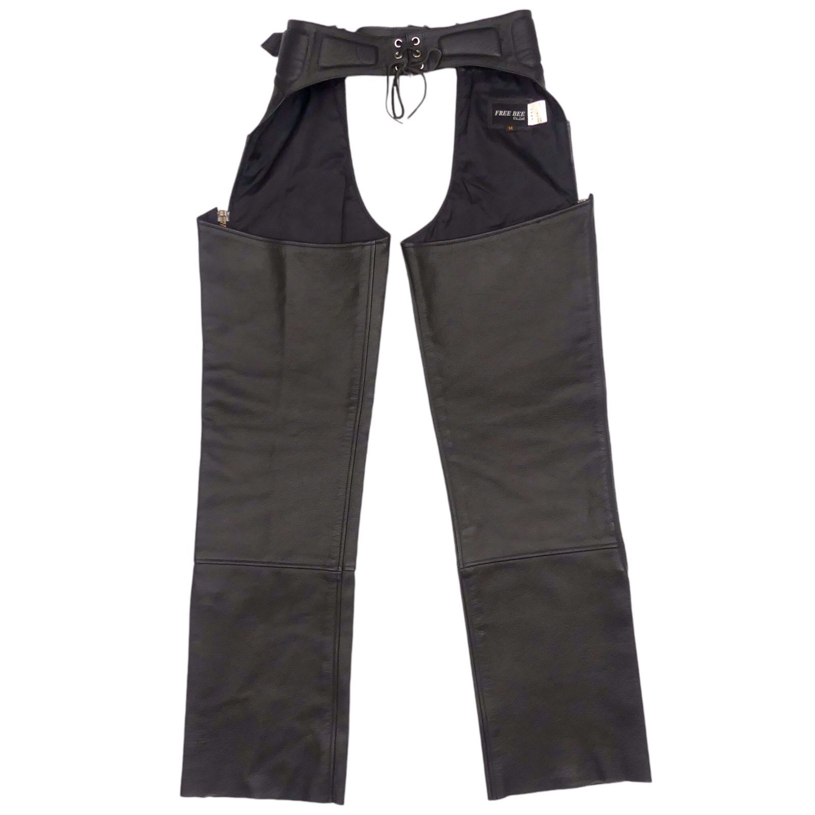 即決★FREE BEE★M レザーチャップス レザーパンツ メンズ 黒 本革 ライダースパンツ 本皮 パンクロック ライディング ツーリング