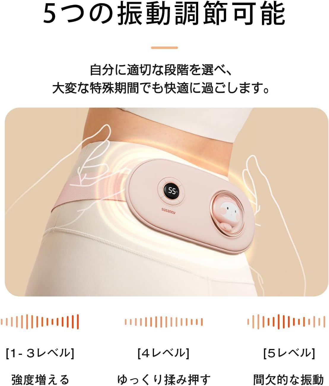 pulino 腰 ホットベルト 温熱ベルト 腹部 5種類調節 3段階ヒーター 暖房用品 子 宮ホットベルト 電熱式 USB充電式 寒さ対策 携帯便利 自宅用 職場用 プレゼント 女性 日本語取扱説明書付き