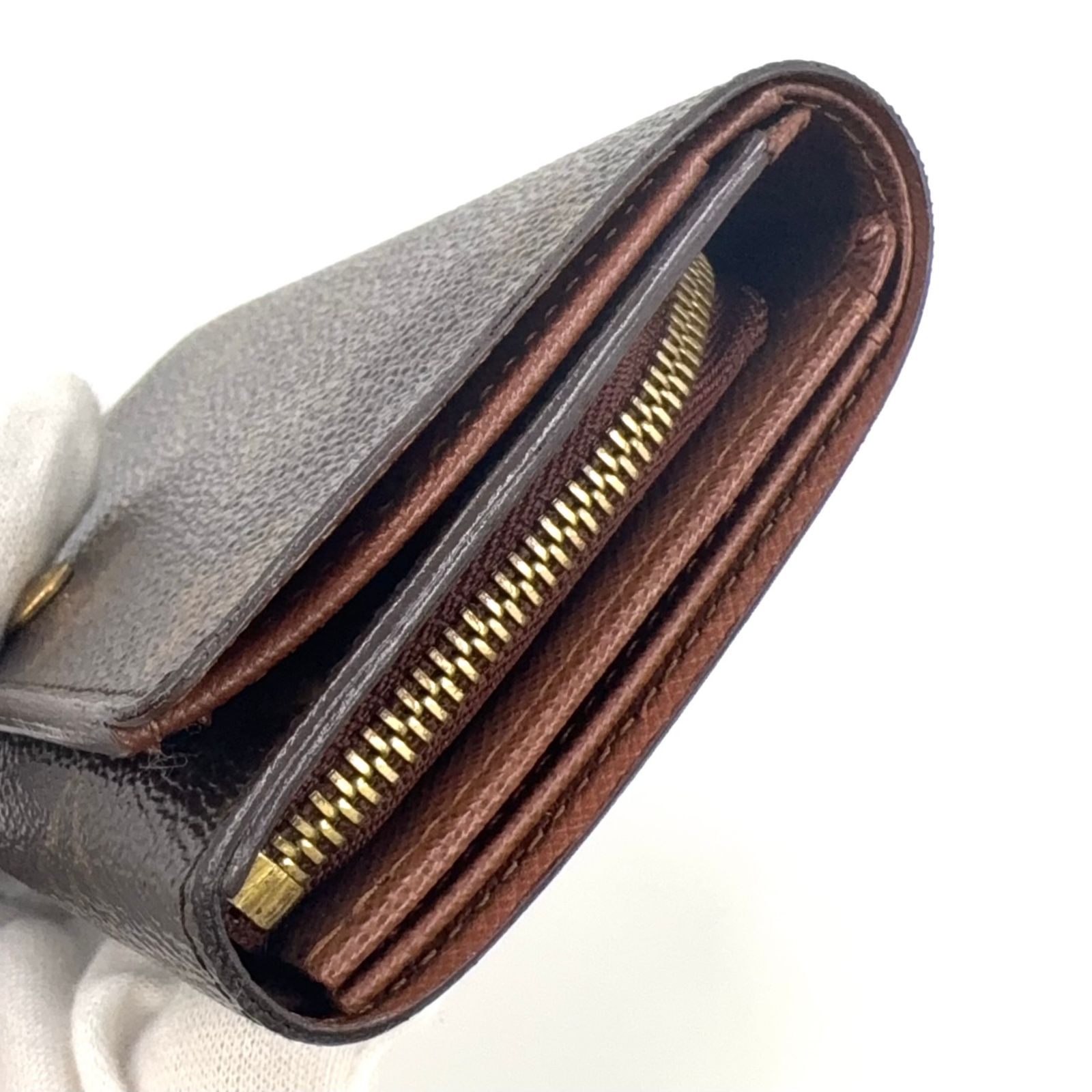 LOUIS VUITTON ポルトモネ ビエ トレゾール モノグラム レザー×PVC ブラウン 二つ折り財布 ゴールド M 61730