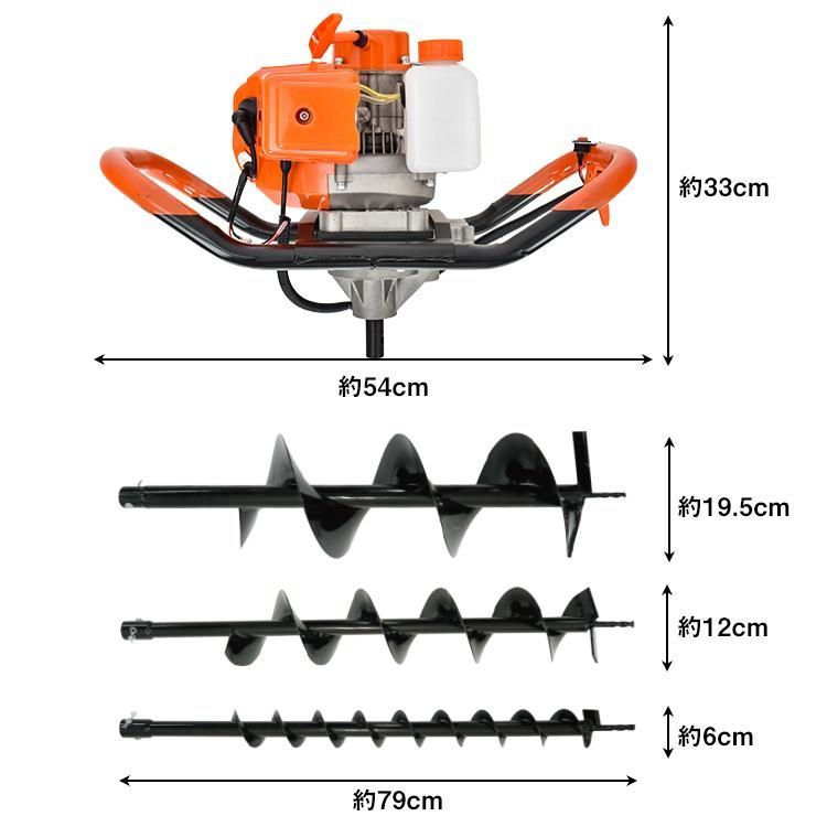 エンジン 穴掘り機 2サイクル 52 cc 1 9 kw アースオーガー 3種 ドリル付き φ60 φ120 φ200 杭打ち 植樹 穴開 種まき くい打ち 建設 sg 048
