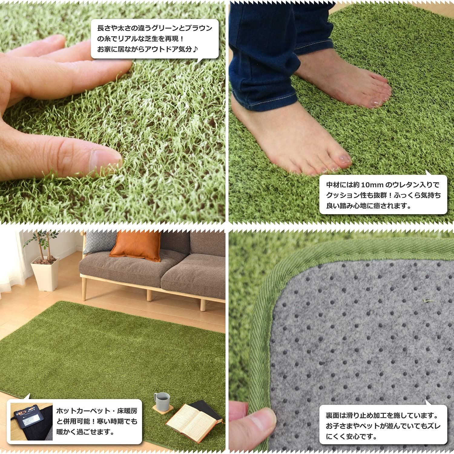 室内のお部屋にいながら、アウトドア気分を味わえる芝生風ラグ