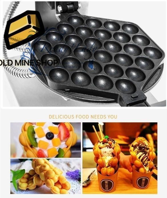 業務用バブルワッフルメーカー 180°回転 パン と木製ハンドル付き 焦げ付き防止ノンスティックコーティング付きステンレススチールベーキングパン シングルヘッド ハートの形