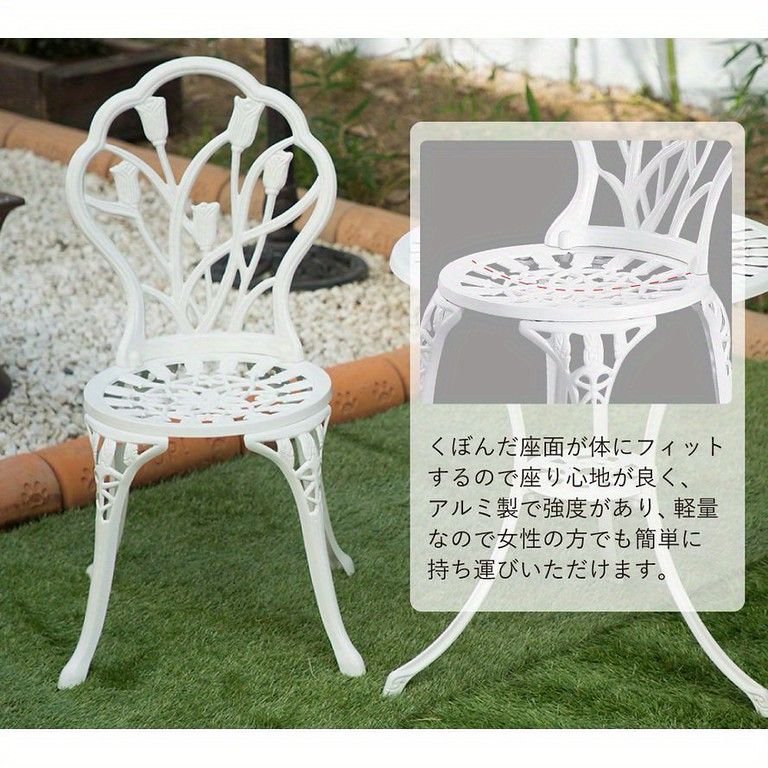 お庭やテラスを優雅に演出する、エレガントなメタルテーブルセット。