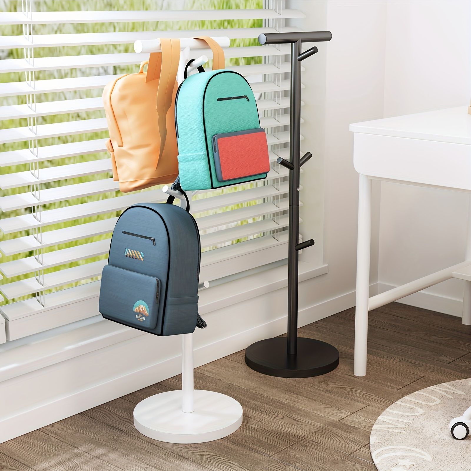 ラック ランドセルラック ランドセルかけ 寝室 多功能 金属 スリム アンティーク アイアン バレットスタンド フック付き 自立式 机の横 子供用 収納 角 2人用 ハンガー コーナー 小型 おしゃれ 屋外 子供 リビング 通学 グッズかけ ブラック