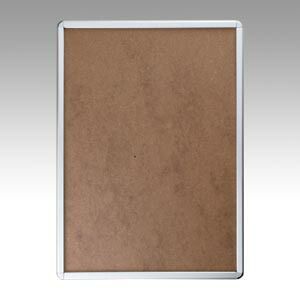 ●規格:B1判●収容寸法:縦1030×横728mm●重量:4.6kg●フレーム幅:32mm●厚:21mm●収納可能厚:0.3mm●材質:フレーム=アルミ押出し型材,コーナー=ABS樹脂成型,表面シート=透明アクリル(1.5mm),背板=ハードボード(再生繊維板)