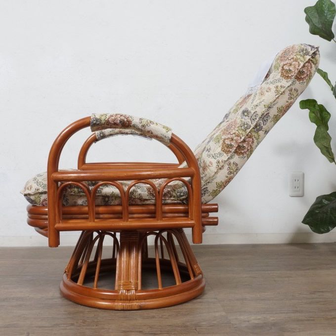 E ゆったり寛げる ラタン 3段階リクライニング座椅子 360度回転式 ハイタイプ アウトレット