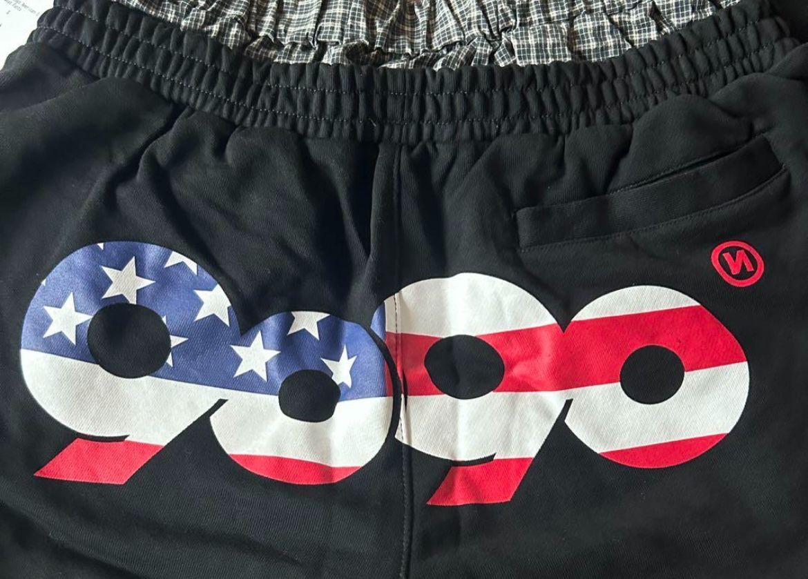 フロントにアメリカモチーフの90ロゴが刺繍され、バックにも大きく9090がプリントデザインされていてトランクスがドッキングされたスウェットパンツになります。
