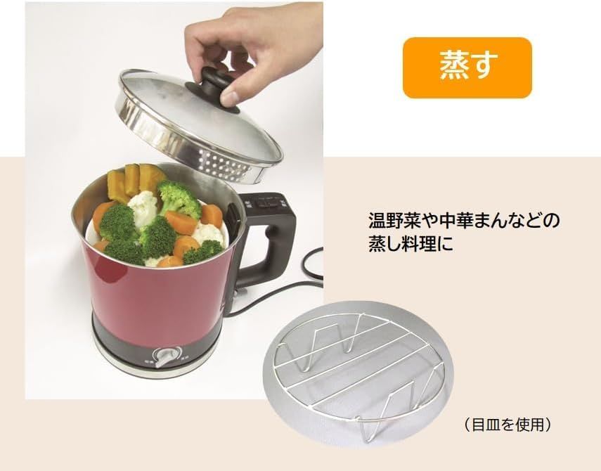 ボイルクッカー クッキングケトル ガラス蓋 ひとり暮らし 温度調節機能 レッド BK-90 R N 18