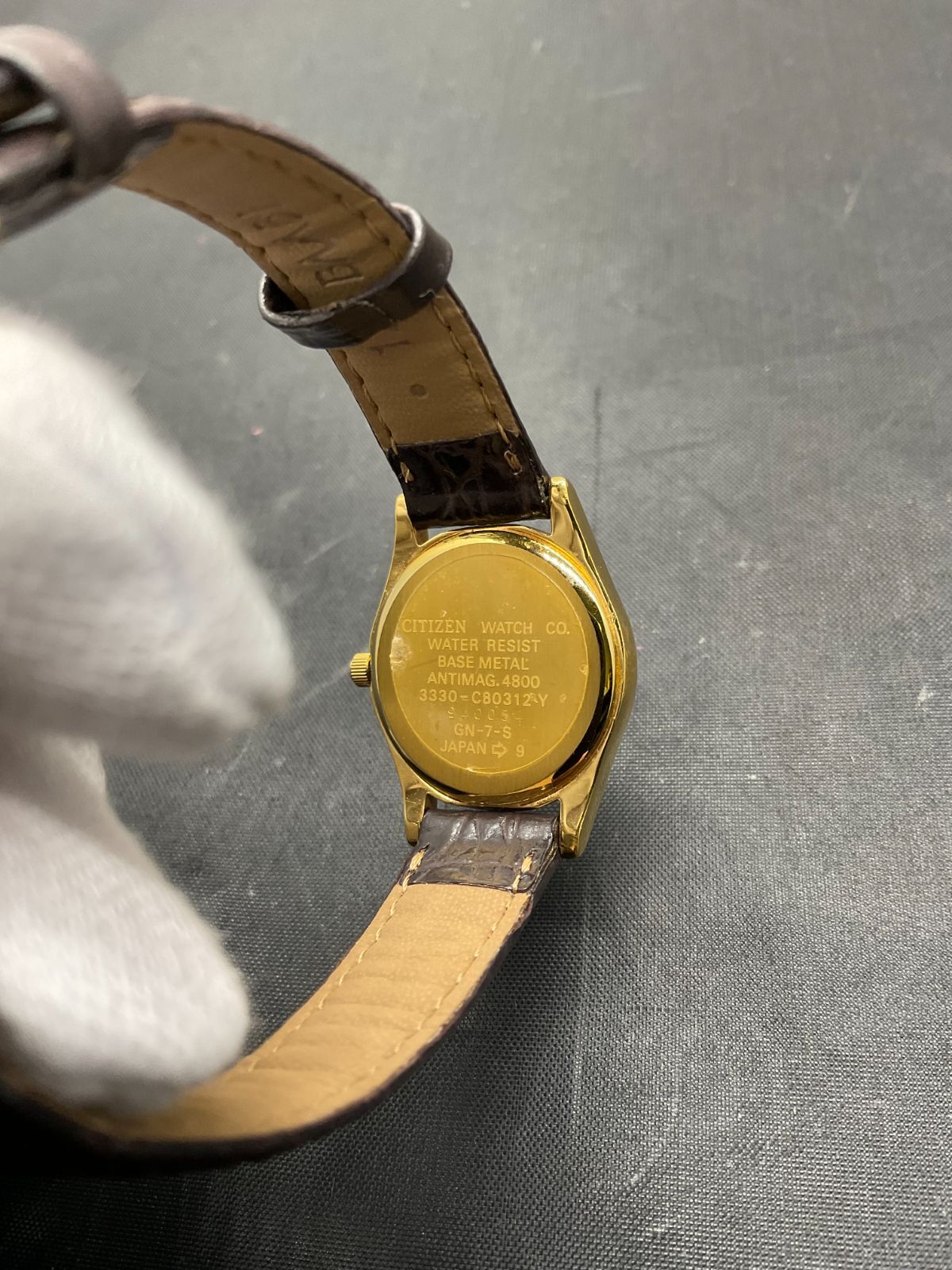 シチズン クォーツ エクシード 時計 革 ホワイト 不動