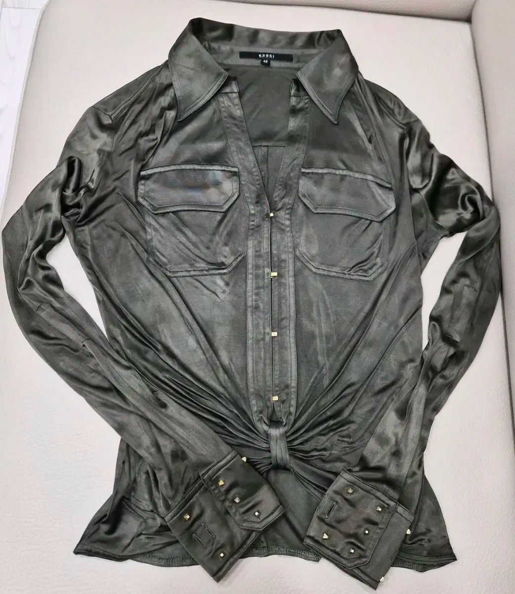 袖 部分には ゴールド 装飾 スタッズ 装飾 があり、スナップボタン で 2個 に なっています。