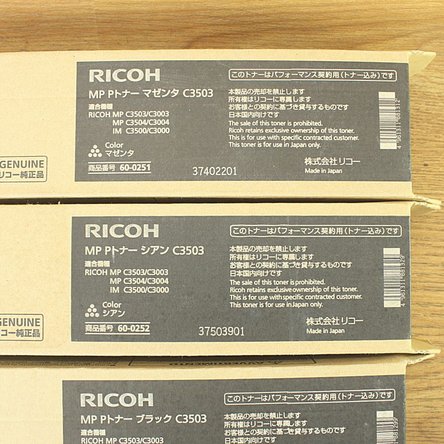 4本 RICOH|リコーC 3503 60-0249|0250|0251|0252 MP Pトナー トナー ブラック|シアン|マゼンタ|イエロー