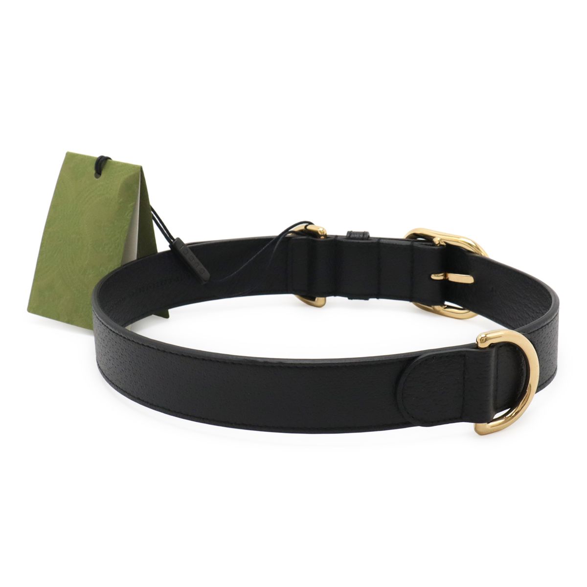 GUCCI グッチ ラージ ペット ドッグ 首輪 ペット用品 大型犬用 レザー ブラック 黒 ゴールド金具 695256