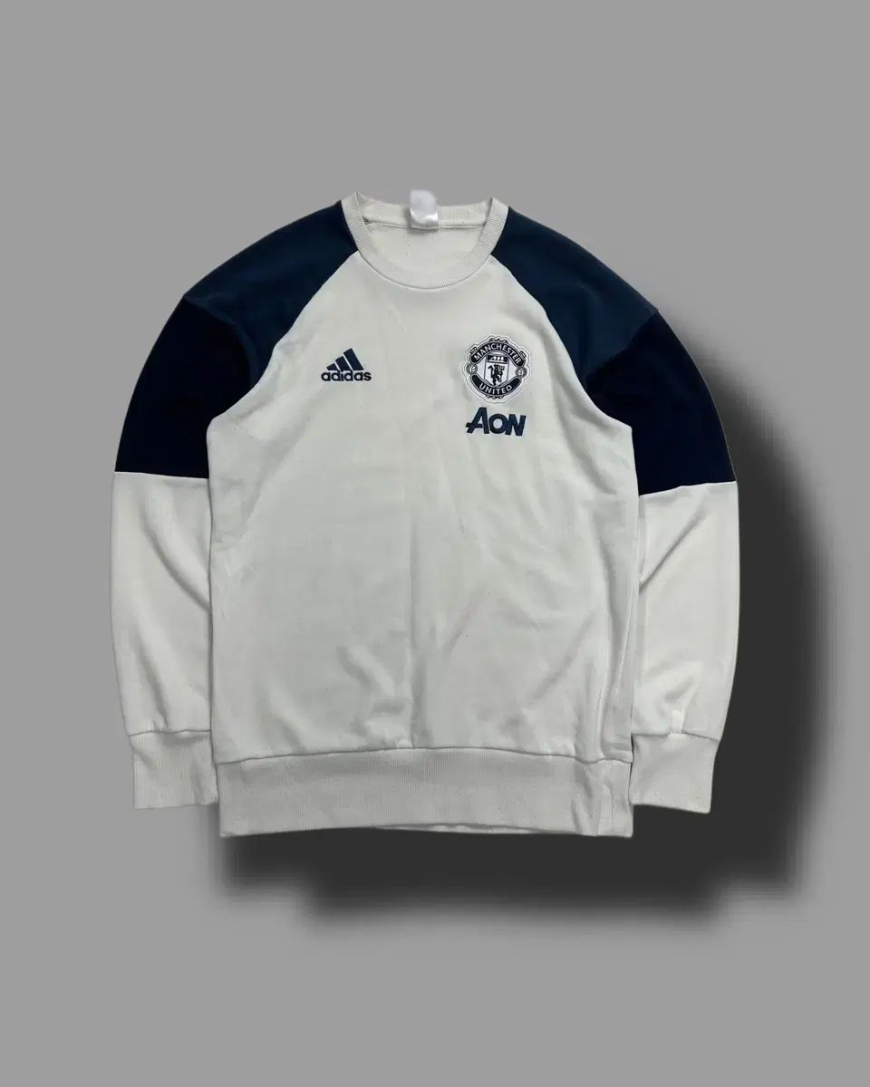 マンチェスター ユナイテッド ロゴと adidas ロゴ 刺繍が돋보이는 スウェットです。白とネイビー バイカラーが POINT이며 全体的に スタイリッシュな コンディションを 維持中の 商品です。