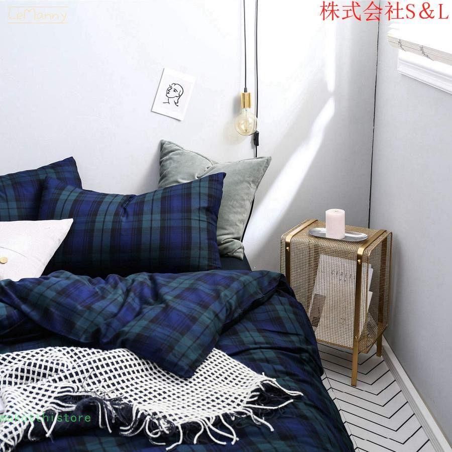寝具カバーセット ベッドカバー 3点 4点セット タータンチェック グレンチェック 布団カバー 厚手 柔らか 快眠 S&L 高密度 枕カバ