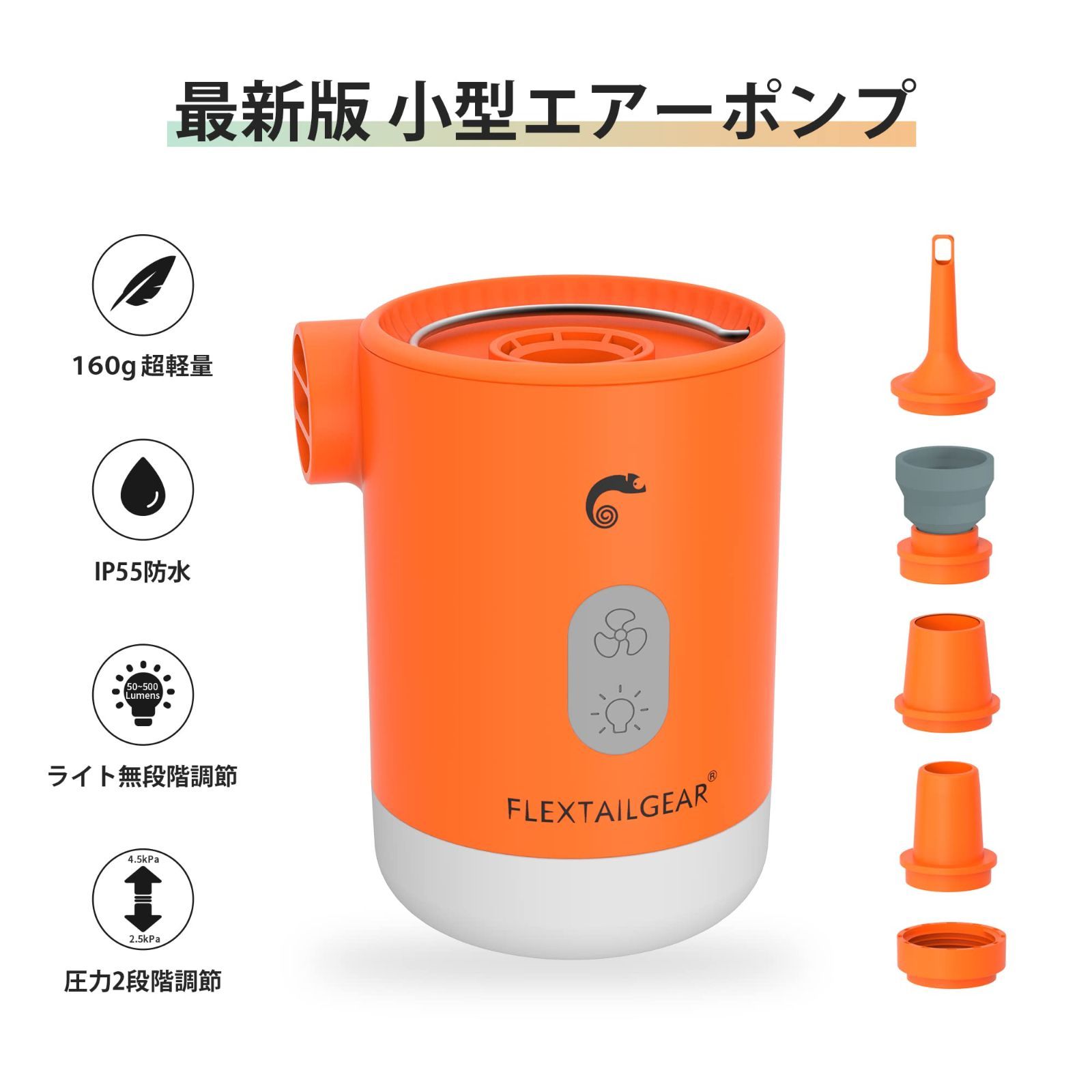 FLEXTAILGEAR MAX PUMP 2 PRO エアポンプ 電動ポンプ 携帯ポンプ 4.5KPa気圧 充電式 3600mAh電池 スマホに充電対応 照明ライト付き キャンプライト 空気入れ 空気抜く キャンプランタン 浮き輪 圧縮袋 アウトドア