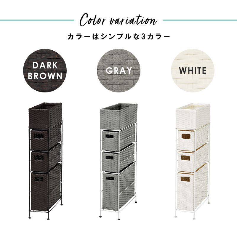 おすすめ用途:トイレ 脱衣所 洗濯機横 省スペース スリム 完成品 トイレチェスト サニタリー ダークブラウン ホワイト グレー 収納棚 トイレラック トイレ用品 収納 トイレ収納 隙間収納 洗濯物 チェスト かご バスケット 防水 コンパクト インテリア スッキリ きれいめ おしゃれ シンプル