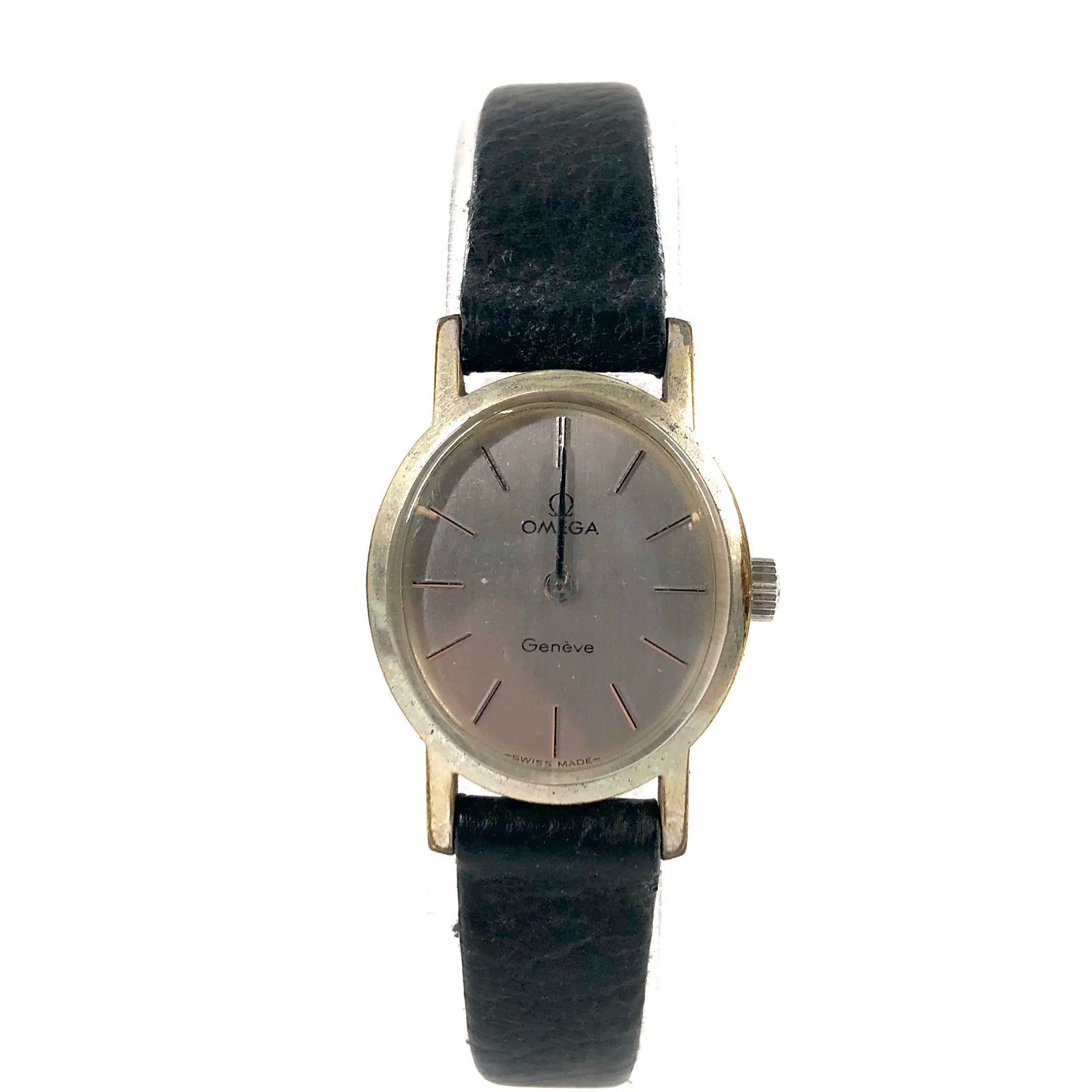 OMEGA オメガ Geneve ジュネーブ レザー 手巻き シルバー文字盤 レディース腕時計 PF-266