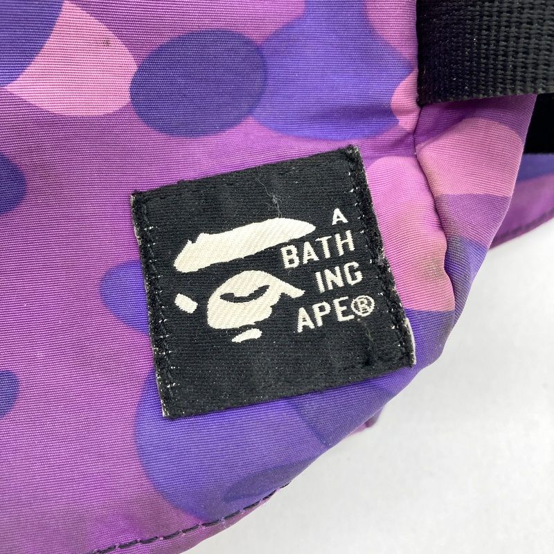 A BATHING APE BAG アベイシングエイプ ボディバッグ ウエストバッグ カモフラ フェス 旅行 男女兼用 フリーサイズ パープル系 鞄 B 15011