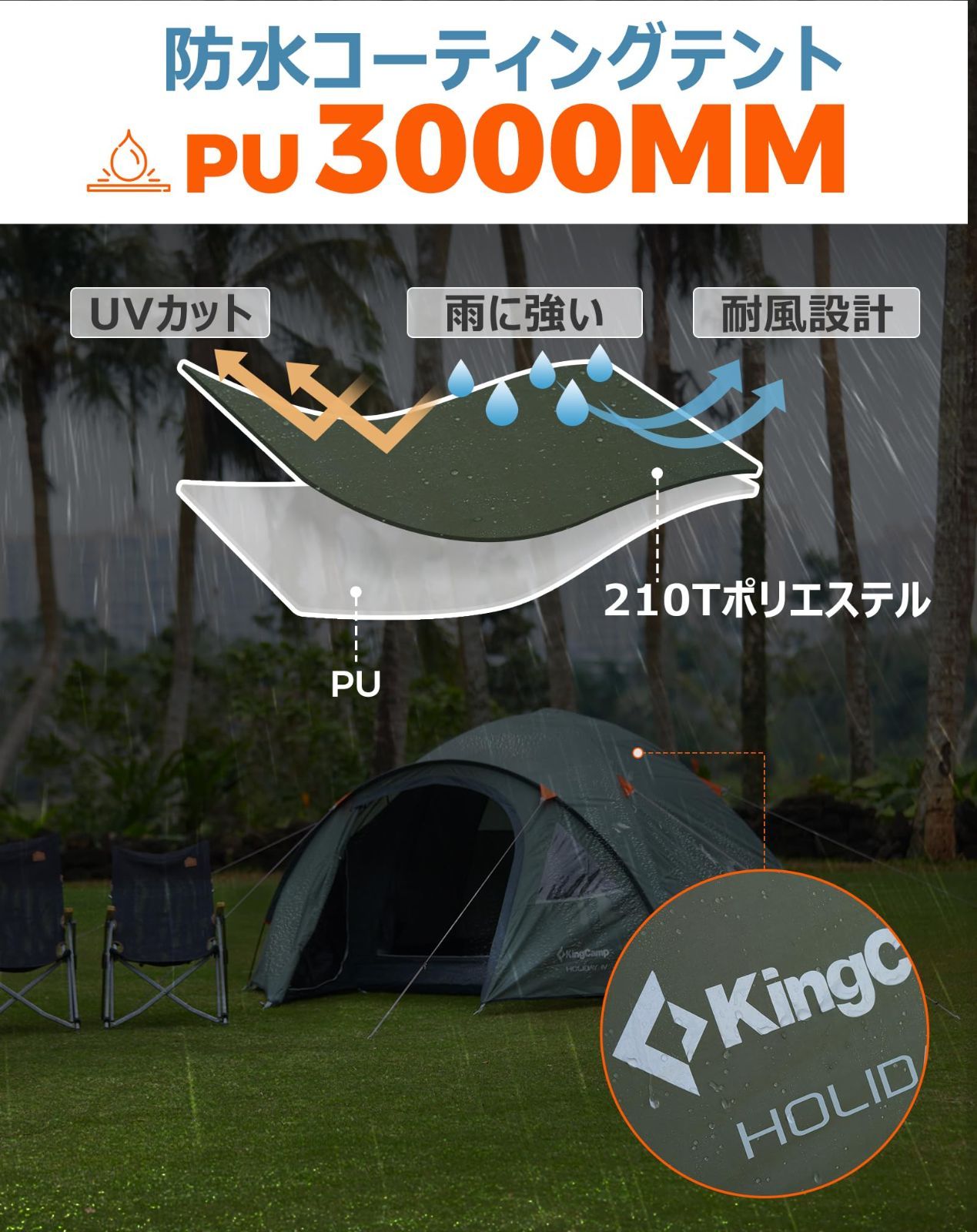 KingCamp ドームテント 拡張テント 初心者向け 2-4人用 幅310cm 前庭付き 防水 通気 ファミリー キャンプ アウトドア ドームキャンピングテント 春用 夏用 テント