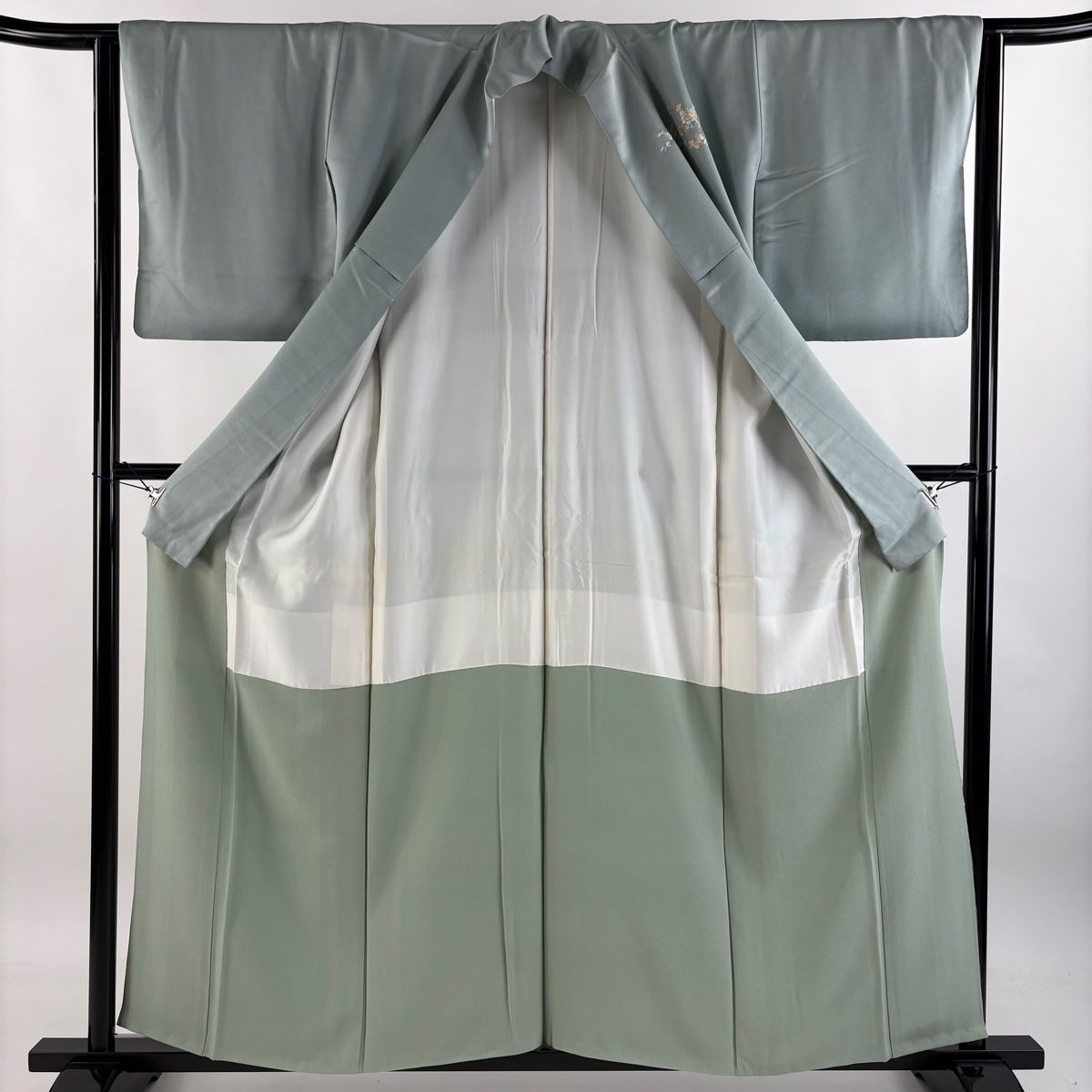付下げ 身丈157 cm 裄丈63 S 袷 草花 松竹梅 刺繍 金糸 青灰色 正絹 秀品