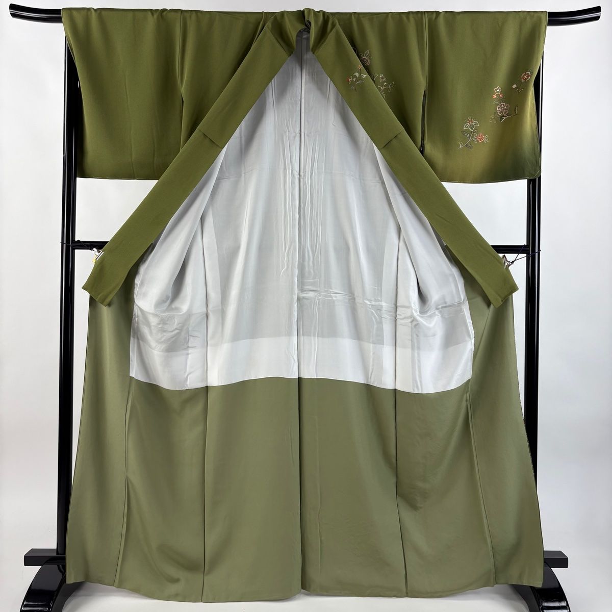 訪問着 身丈166.5 cm 裄丈67.5 L 袷 華文 草花 金銀糸 刺繍 よもぎ色 正絹