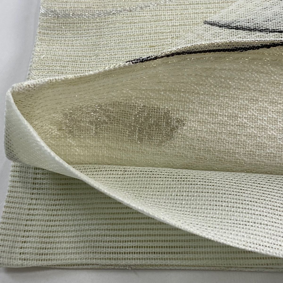 袋帯 秀品 夏帯 幾何学模様 金銀糸 クリーム 六通 正絹